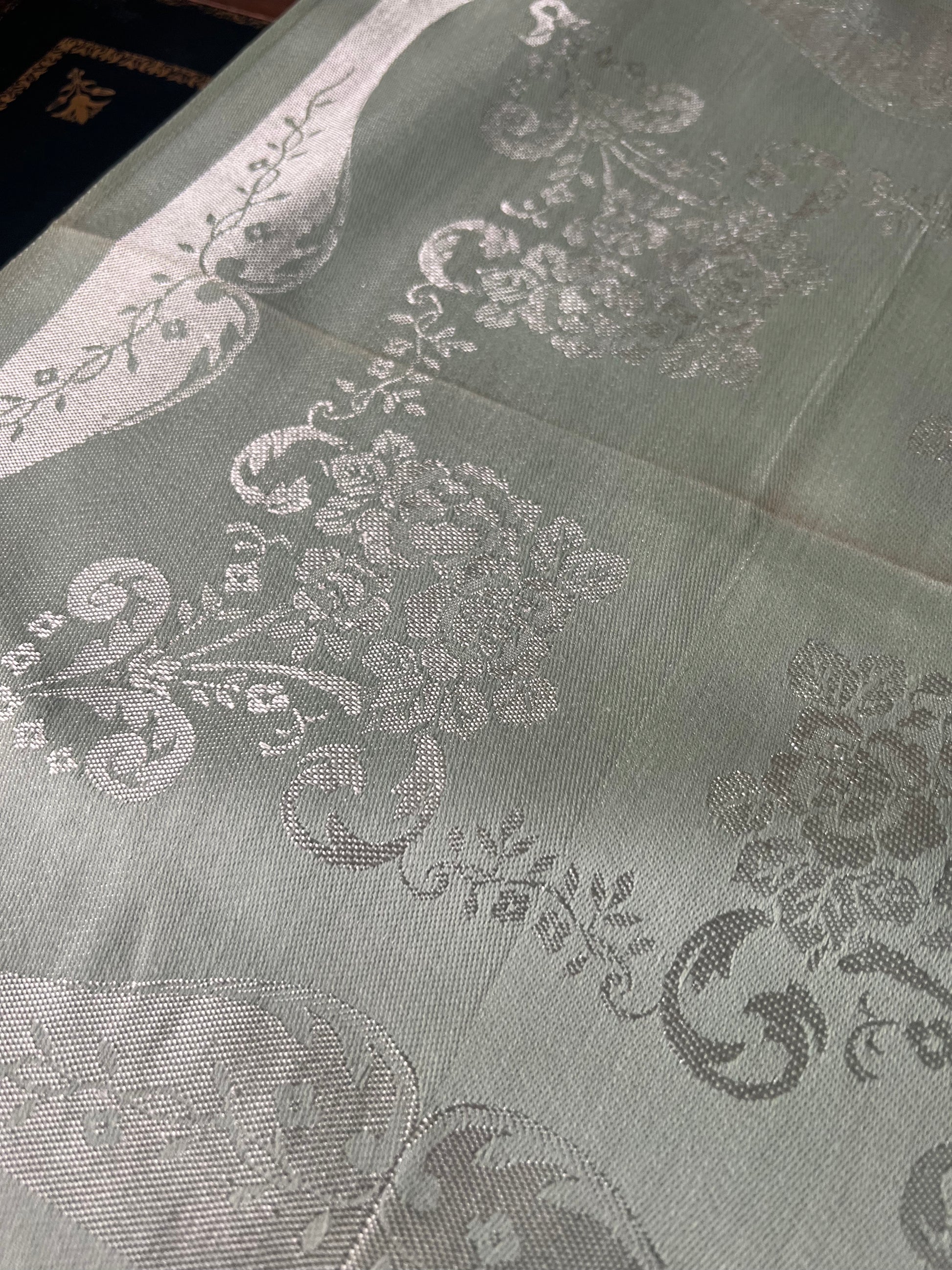 This set of six vintage light soft green napkins brings timeless elegance to your dining table. Each napkin measures 16" x 16" and is crafted with care, offering a rich color and classic style perfect for both everyday meals and special occasions. Their vintage character adds charm and sophistication, making them ideal for collectors, entertainers, or anyone looking to elevate their table setting with a touch of history and refinement.