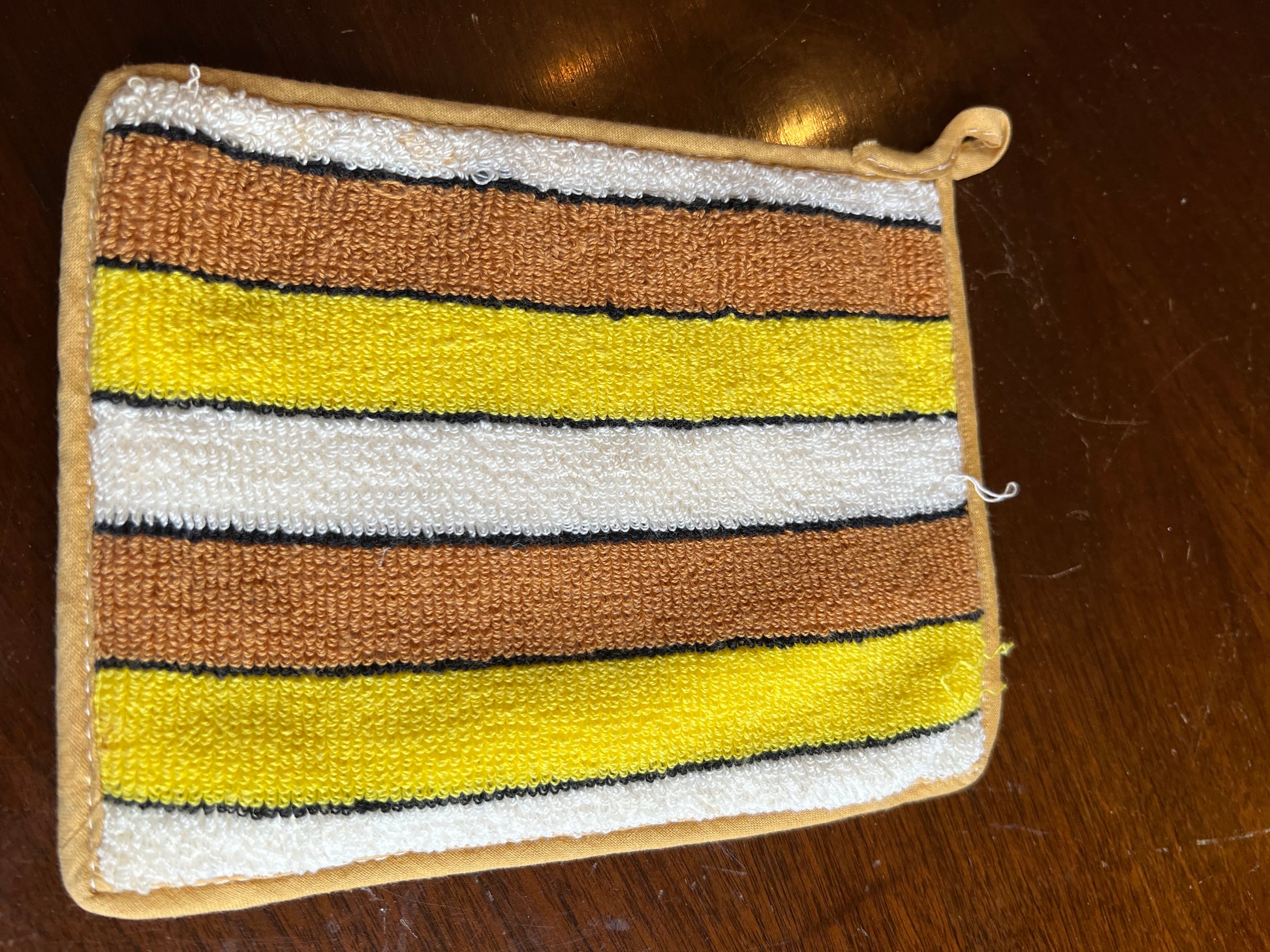 π³ Vintage Striped Oven Mitt β Brown, Yellow & White, 6" x 2"