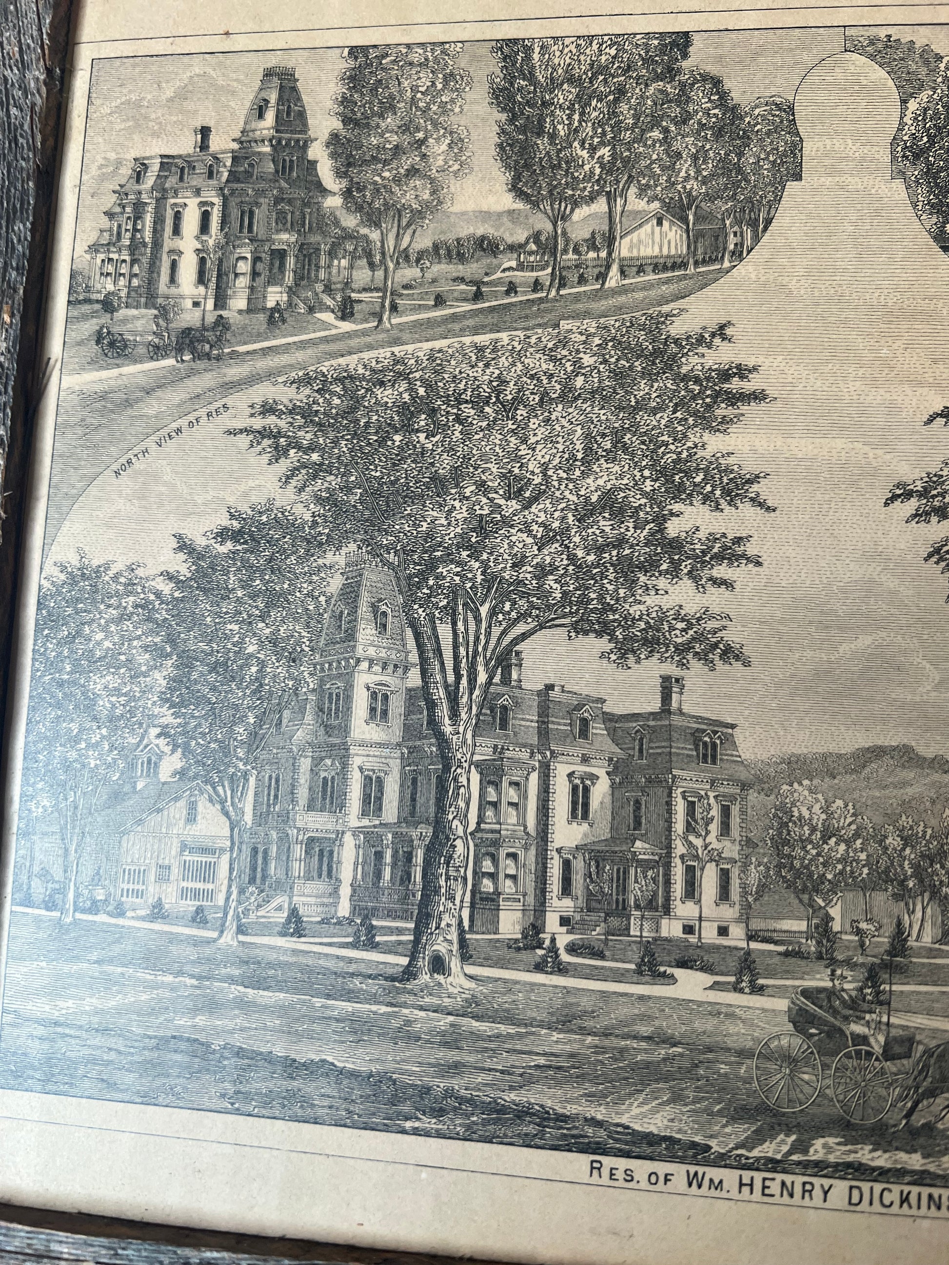 Step back into 19th-century New England charm with this beautifully framed 8x13.5 print depicting the historic home of William Henry Dickson in Hatfield, Massachusetts. This finely detailed image captures the essence of small-town architecture — from the graceful rooflines and clapboard siding to the mature trees that surround this classic New England residence.