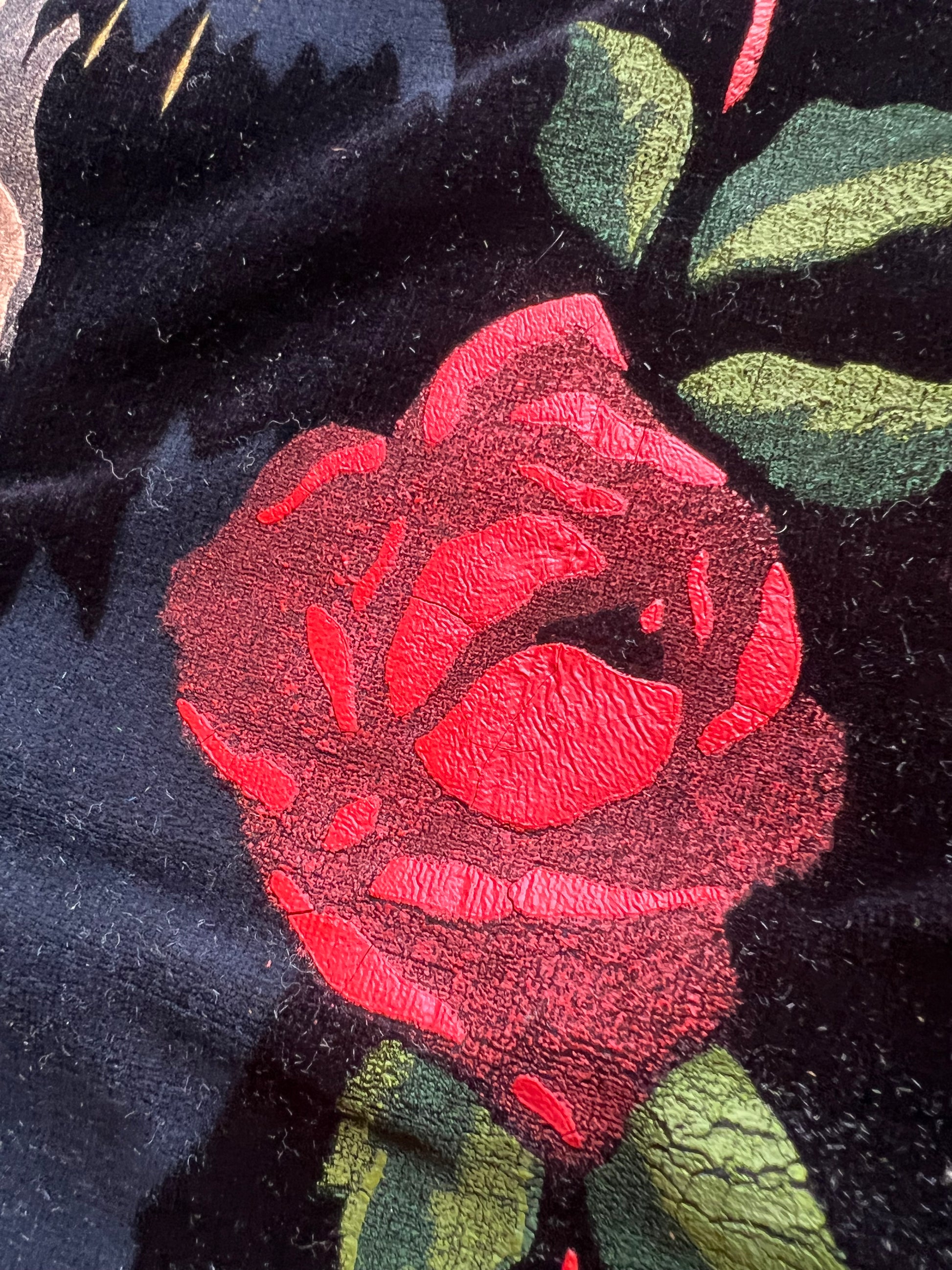 Bring timeless charm to your home with this beautiful vintage theorem painting featuring hand-painted flowers on a luxurious velvet background. 🌹 The soft texture of the velvet makes each bloom come alive, adding warmth and depth to the design. ✨
